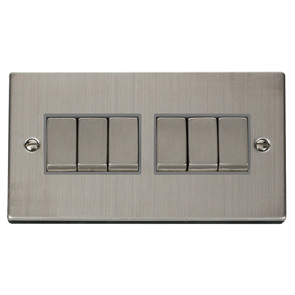 Stainless Steel 10A 6 Gang 2 Way Ingot Light Switch - Grey Trim