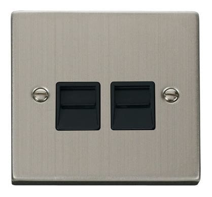 Stainless Steel Secondary Telephone Twin Socket - Black Trim