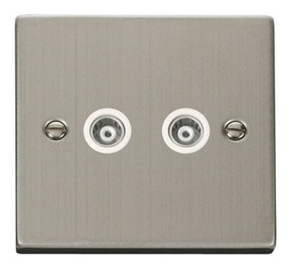 Stainless Steel Twin Isolated Coaxial Socket - White Trim