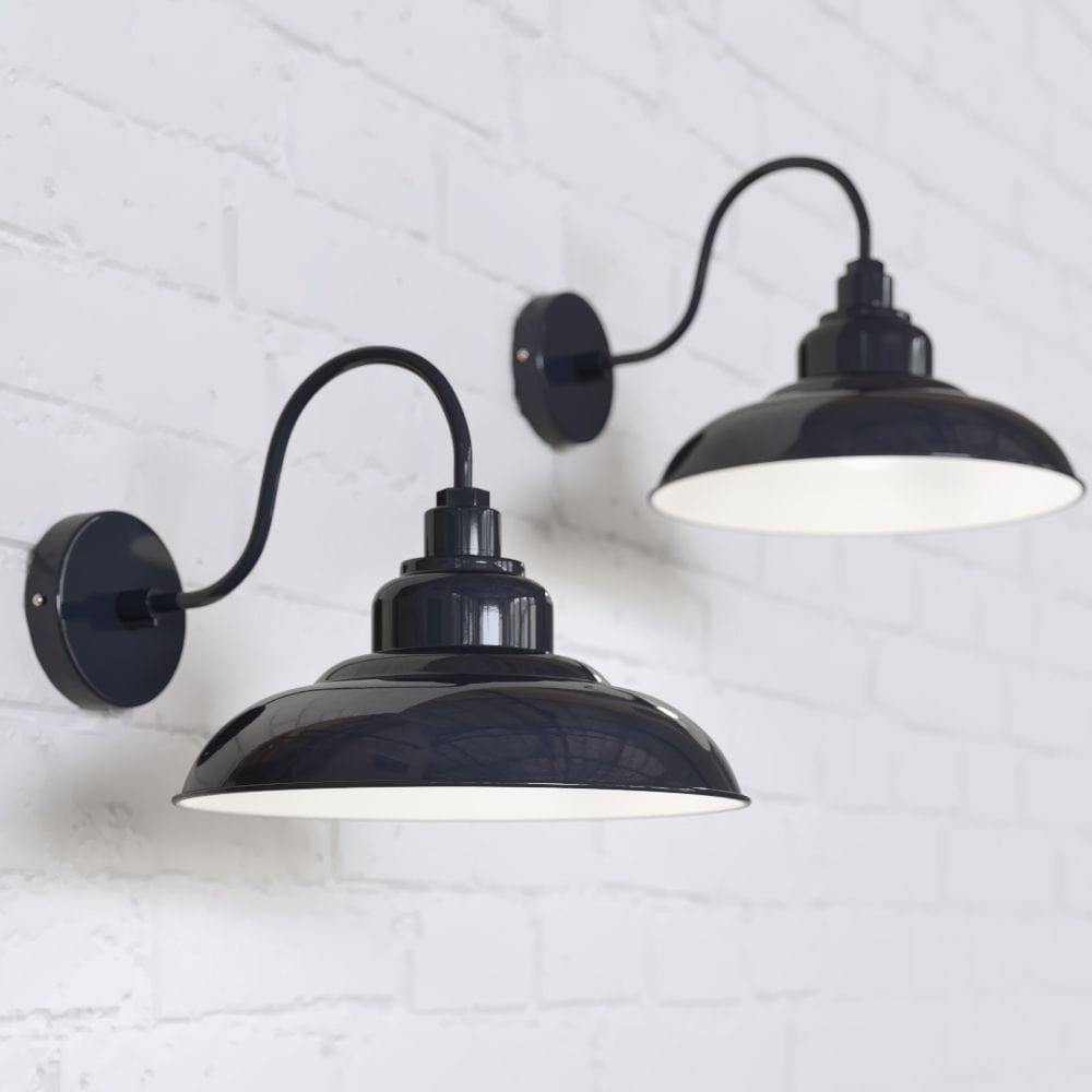 This is the Portland Reclaimed Style Wall Light exterior in our Squid Ink Blue finish. This luxurious, deep midnight tone of blue black looks spectacular in both period and contemporary settings. This light is handmade to deliver a period enamelled look and the inside of the shade is finished in classic off-white, for exceptional light output.