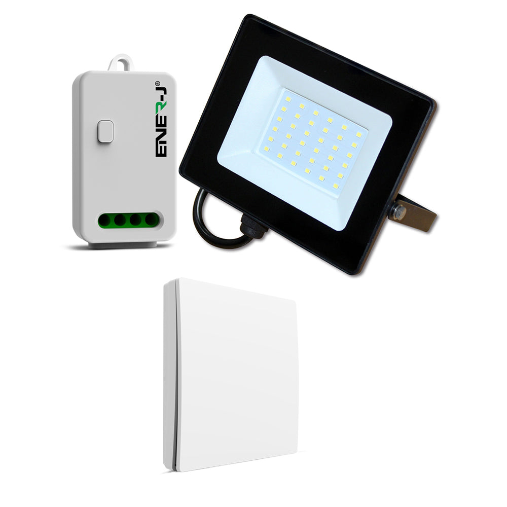 Upgrade your outdoor lighting with the SE HOME 30W Slim LED Floodlight, pre-wired with a 5A RF Receiver Module. This innovative floodlight saves you time and labor costs during installation as it comes equipped with the receiver module. All you need to do is pair it with a Wireless Kinetic Switch from our ECO Series range, available in various colors and styles. The floodlight's integrated receiver allows you to control it wirelessly with the wireless switch, and you can pair up to 10 separate switches with a single floodlight. With its IP65 rating, shatter-resistant tempered glass, and durable die-cast aluminum casing, this floodlight is perfect for gardens, security lighting, factories, and more.