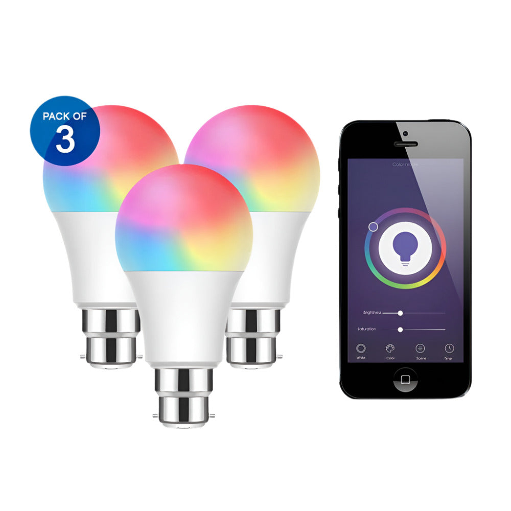 3 Pc Pack Smart 9W WiFi LED Bulb RGB+CCT Changing & Dimmable
