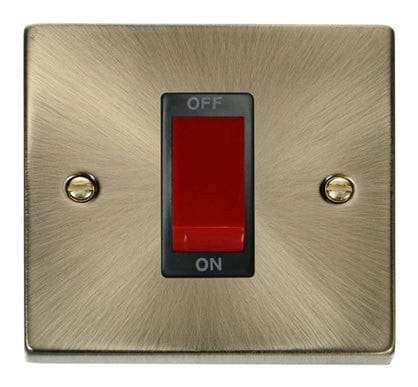 Antique Brass 1 Gang Size 45A Switch - Black Trim