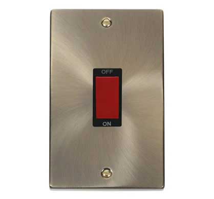 Antique Brass 2 Gang Size 45A Switch - Black Trim