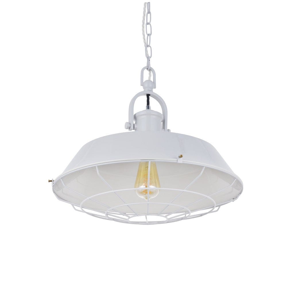 The ultimate in industrial styling, this Brewer Cage Industrial Pendant Light in Pale Greyis hand finished in paint to emulate a timeless enamelled look, with natural subtle imperfections to give the light authenticity and charm.