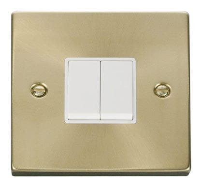 Satin Brass 10A 2 Gang 2 Way Light Switch - White Trim