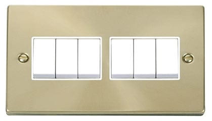 Satin Brass 10A 6 Gang 2 Way Light Switch - White Trim