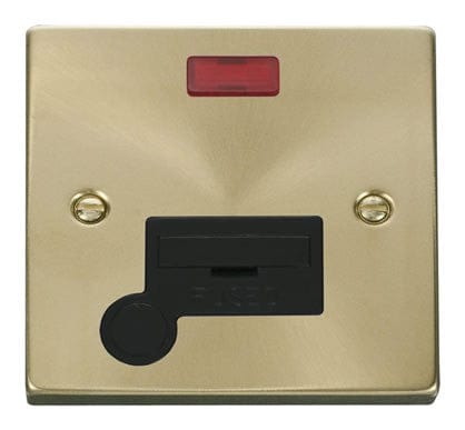 Satin Brass 13A Fused Connection Unit With Neon With Flex - Black Trim
