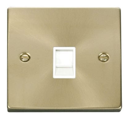 Our Satin Brass raised plate, TV, Satellite, Phone, Data & Brush Outlet sockets are beautifully crafted with a sleek profile. Each plate has a subtle brushed spiral effect from the plate centre.
