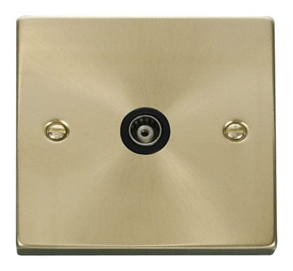 Our Satin Brass raised plate, TV, Satellite, Phone, Data & Brush Outlet sockets are beautifully crafted with a sleek profile. Each plate has a subtle brushed spiral effect from the plate centre.